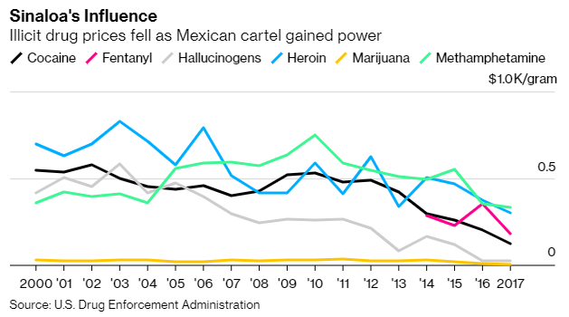 Precios ilícitos de las drogas cayeron mientras el poder del Cártel aumentó.